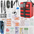 [[282 Pieces Emergency First Aid Kit Essentials] Emergency first aid supplies and survival gear designed for outdoor enthusiasts for example you can use the essentials from the emergency bag to care for minor scrapes etc It also contains many outdoor survival equipment such as tactical flashlight knife flint fire starter 10ft paracord whistle bracelet with a compass emergency blanket and poncho etc A portable waterproof first aid kit is a must for outdoor enthusiasts (Man and Women) "[Compact Waterproof Camping Essential First Aid Kit] The molle first aid kit measures 7 x 5.8 x 3.9 and weighs 2.1 pounds the kit can be attached to any molle system: backpack vest vehicle molle panel which is an ideal portable size for outdoor sports travel backpacks. It is designed for sports outdoor enthusiasts and is easy to carry It is very suitable for camping hiking traveling hunting fishing boating cycling backpacking and other outdoor adventure sports" [Designed for survival gear and supplies] This emergency first aid kit is great for backpacking boy Scouts hikers campers outdoor sports enthusiasts etc. It is ideal for car ship bicycles motorcycles travel shooting hunting camping hiking fishing boating outdoor sports wilderness adventure and other activities 【Waterproof and Durable Molle EMT Pouch】A practical and sturdy first aid kit for outdoor use made of double-layer 1000D nylon with multiple fixing straps on the back releasable veneer panel adjustable release buckle releasable american flag patch D-ring metal snaps and 2 zippers. It can be fixedly connected to any molle system. suitable for tactical belts backpacks vests bicycles motorcycles trucks etc molle panels [PERFECT GIFT AND AFTER-SALES GUARANTEE]: It is a very practical birthday christmas or other holiday gift for men fathers family friends women the professionally designed camping first aid kit is very suitable for people who like hiking camping and other outdoor activities. The survival equipment can help you or your family and friends deal with any emergency. If you encounter any problems with the survival first aid kit please contact us and we will guarantee satisfactory service]